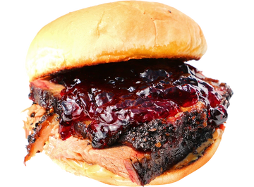 SLICED BRISKET, PULLED PORK, REGULAR OR JALAPENO CHEESE SAUSAGE AND TOPPED WITH OUR SPECIAL BUFFALO SLAW. SERVED ON A TOASTED BUN.
